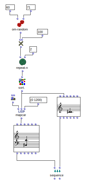 Hello everyone, I have tried for the past 2 days to create a patch that allows me to generate a two note chord and obtain its inversion (top to bottom). I’ve realized that the problem lies in the “first” lisp function that doesn’t gather the correct value from the chord box. Up until that point, the list remains intact in its contained values. Funny thing though, is the fact that sometimes the inversion is indeed correct. I really can’t tell, there’s something that happens between the “chord” and the “first” objects. I’ll attach patch file. Thank you for your time.