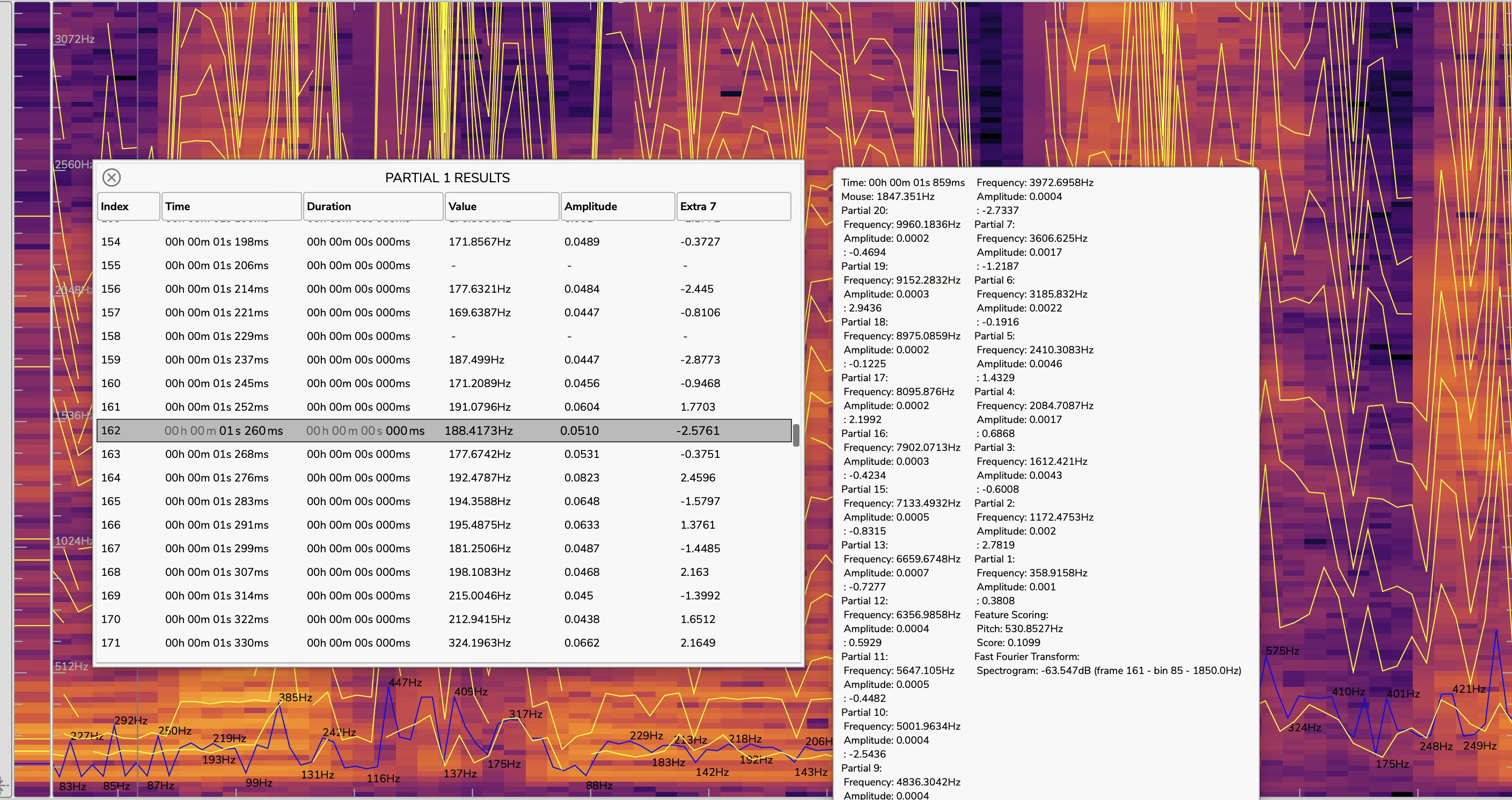 Also the results seem to be a bit confusing to me… maybe this is quite obvious, but they don’t seem to represent a list with pairs of frequency, amplitude for each frame over time. I was trying to read the manual but can’t seem to decipher how those values represent the sound over time