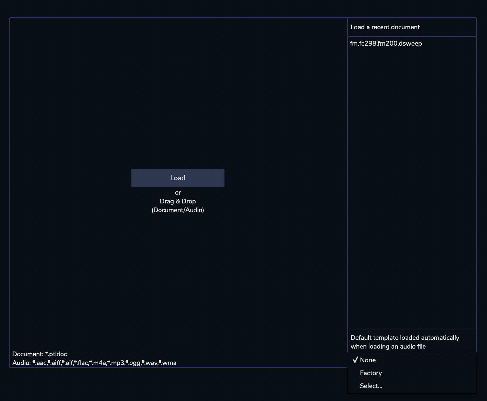 Ensure that the default template is set to “None”, or select “PM2-Partials-Tracking-Harmonic-20.ptldoc” (in this case, it will be automatically applied to all new projects).