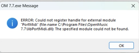 tried to install into a friends windows 11 computer the OM7.7 and gor this problem: